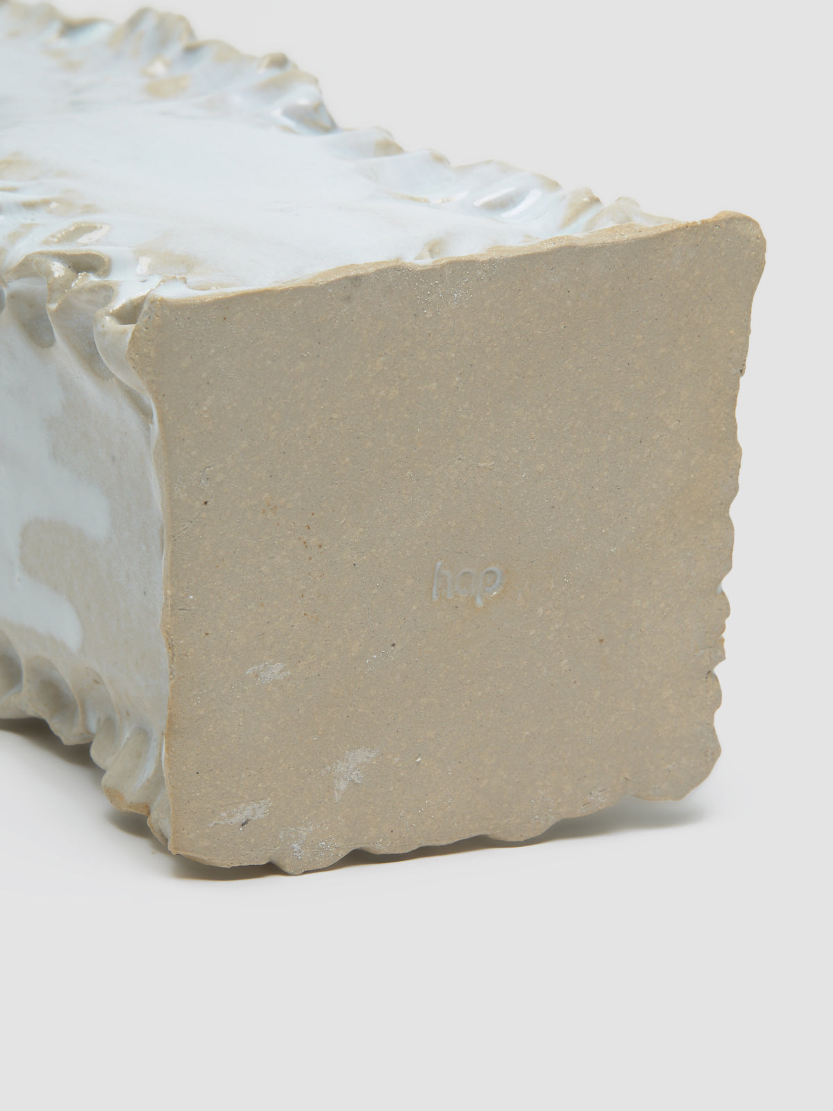 Hap Ceramics Squeezed Vase in White is handmade in Germany and fired at 1230°C, making it durable and waterproof.