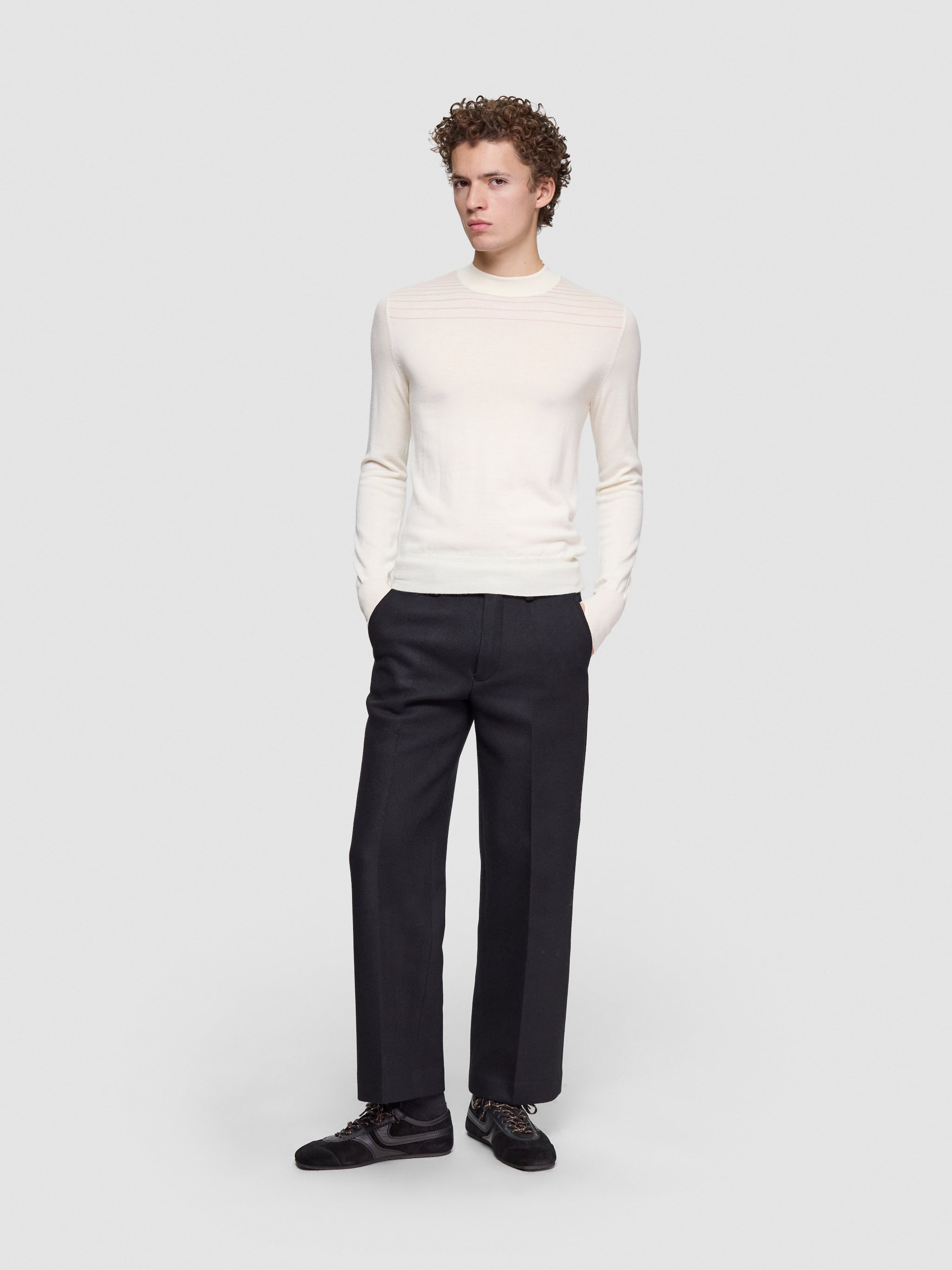 – Jacquard stripe details at the top