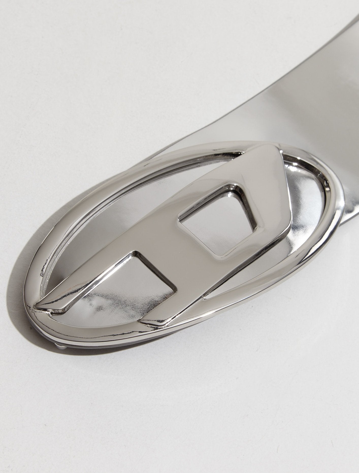 Diesel Leather Belt in Silver is made from a leather blend featuring an oversized logo hardware detail.