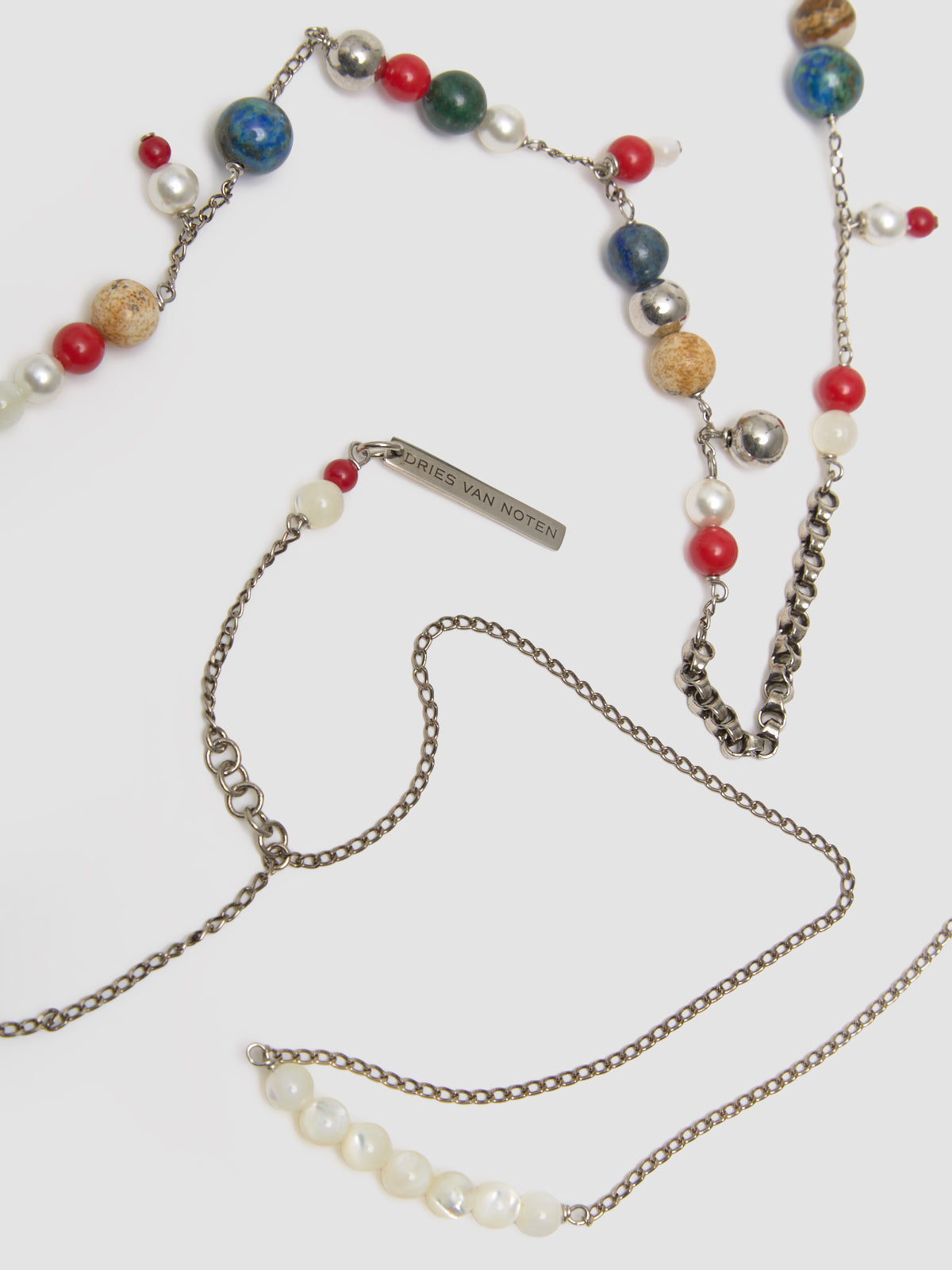 Dries Van Noten Pearl and Stone Necklace in Multicolor in Multicolor is made with brass featuring natural stones and freshwater pearls.