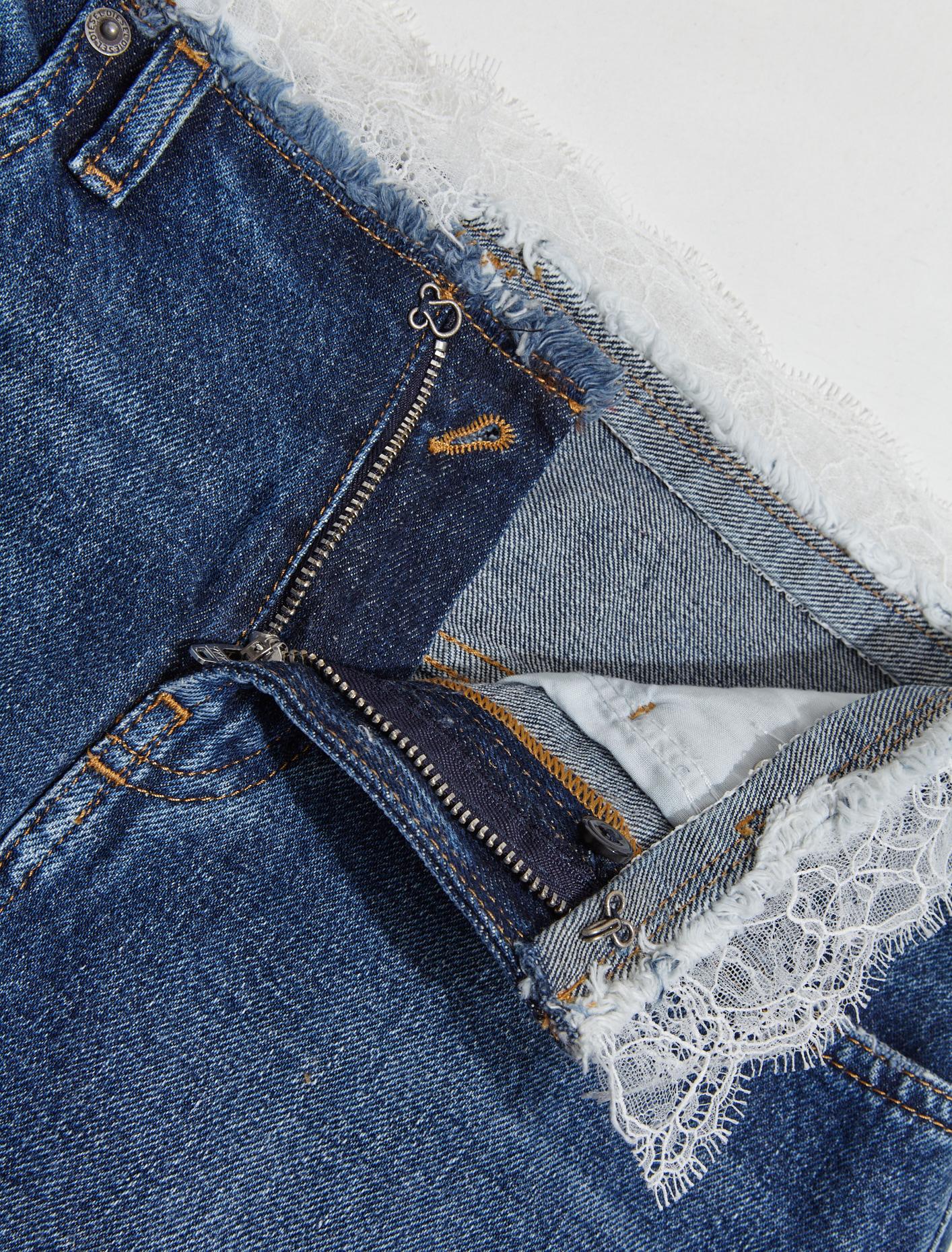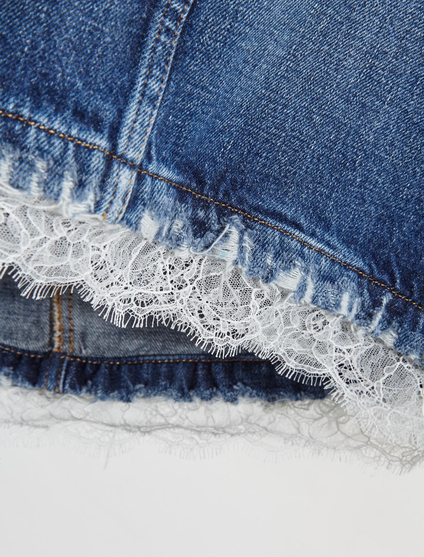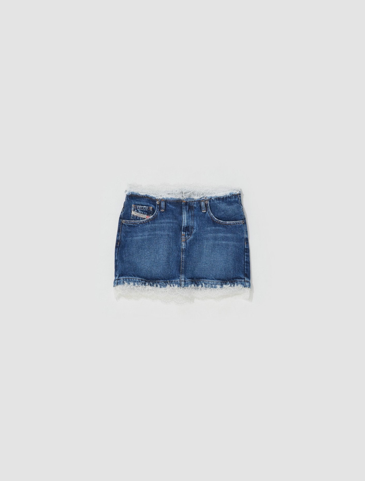 Diesel Ron Skirt with Lace Trimmings in Denim Blue is made from 100% cotton following a mini silhouette with lace trimming details.