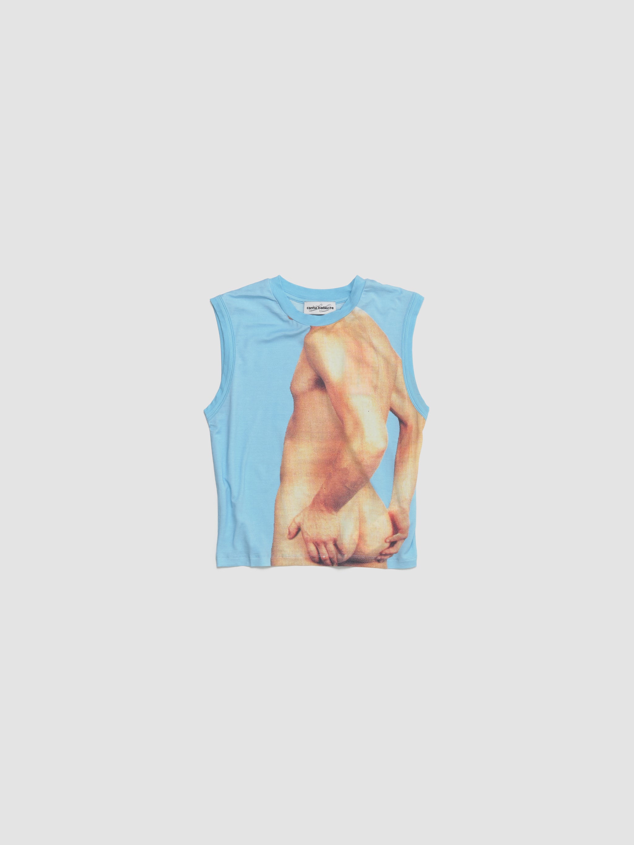 Carne Bollente Touch With the Eyes Sleeveless Top in Blue is made from a lyocell blend following a fitted silhouette with a graphic print at the front.
