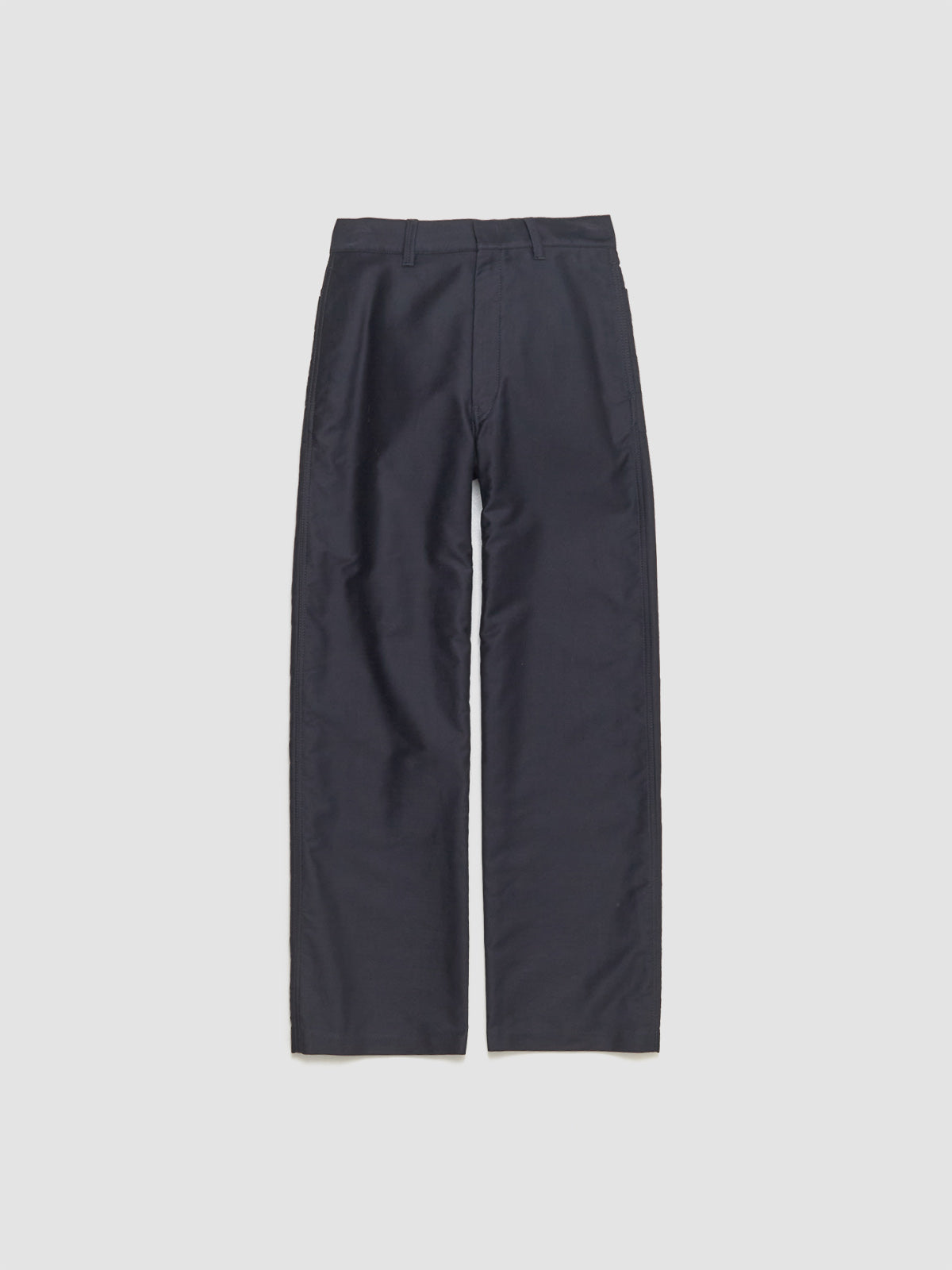 Lemaire Wide Workwear Pants in Urchin are made from 100% cotton following a straight silhouette with a pressed crease at center.