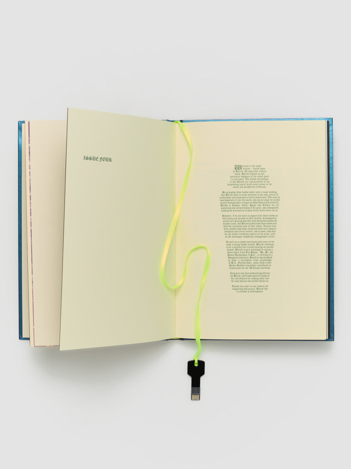 Each volume of uncorporeal life is hand bound and lovingly laid out akin to a medieval illuminated text. The compendium of the first six issues includes 39 Interviews with underground extreme metal bands from all over the world, including musicians from Japan, Russia, Indonesia, Turkey, Spain, Italy, Thailand, Finland, Sweden, the Philippines, and the UK. The compendium features interviews with scene metal luminaries such as WORMED, Ingested, Liturgy, Midnight Odyssey, and Viscera Infest early in their careers. Many interviewees were interviewed in English for the first time, including Viscera Infest, Digging Up, and Needle Contaminated Pork. Buried worked with translators to make these interviews possible. This meticulously produced publication also features 19 artists’ commissions, including illustrations, fiction, essays, VR experiences, sound art, and scripts. The artists commissioned include metal illustration legend, Mark Riddick (Autopsy, Dying Fetus, and Justin Beiber) and Turner Prize-winning artist Tai Shani. Each volume was previously distributed in strictly limited print runs of 50 or fewer and is now collated into this unique facsimile reprint.