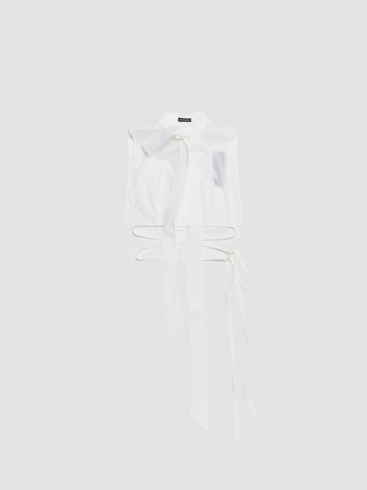 Ann Demeulemeester Cyra Plastron With Detachable Foulard in Natural White is made from 100% cotton following a cropped silhouette with wraparound straps.