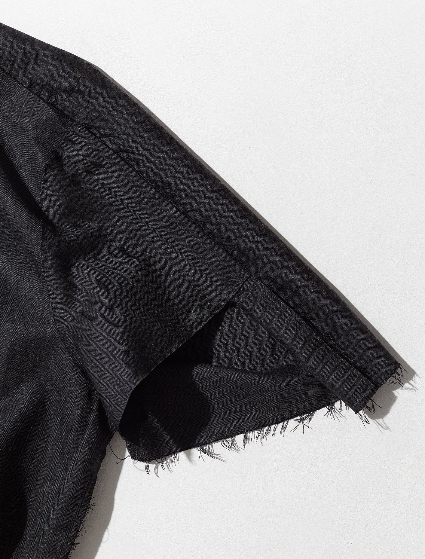 Maison Margiela AW21 Deconstructed Dress in Grey is made from 100% lightweight wool following an oversized silhouette with deconstructed and raw–edge details. The dress is closed with concealed zip fastening and features a round neckline and asymmetric short sleeves. The back is decorated with the signature four–stitch moniker. The inside is lined.