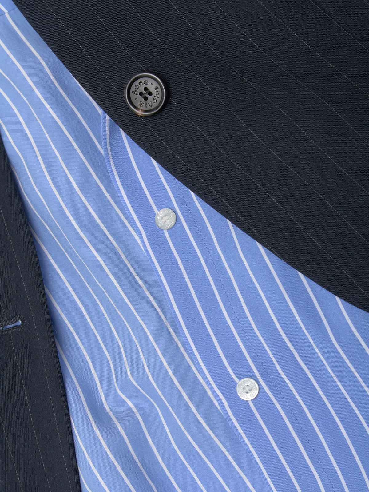 Acne Studios Layered Suit Jacket in Navy is made from a viscose blend following a relaxed silhouette with layered shirting detailing.