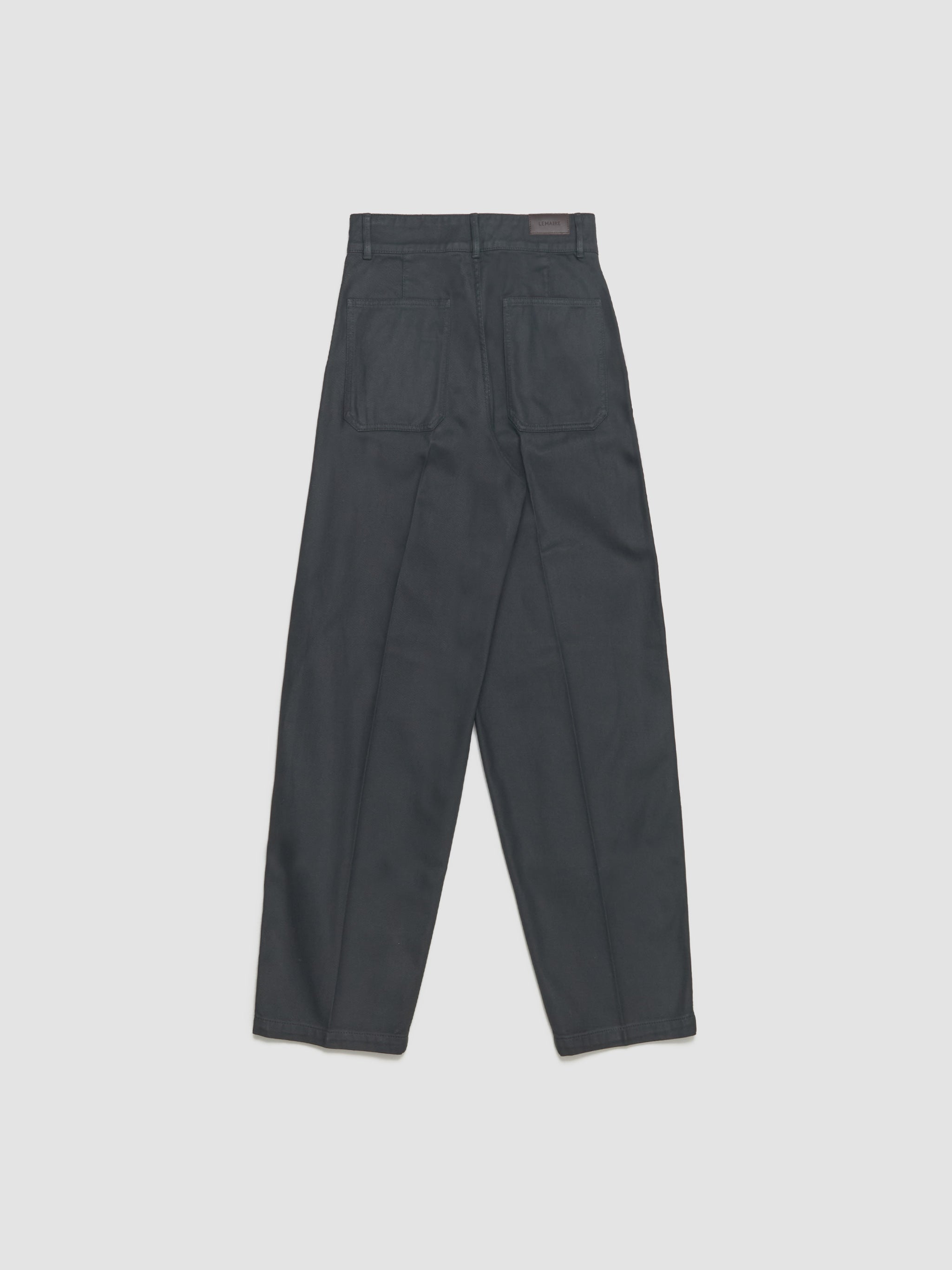 Lemaire Maxi Barrel Workwear Pants in Coal are made from 100% cotton following a straight-leg silhouette with pressed pleats at the legs.