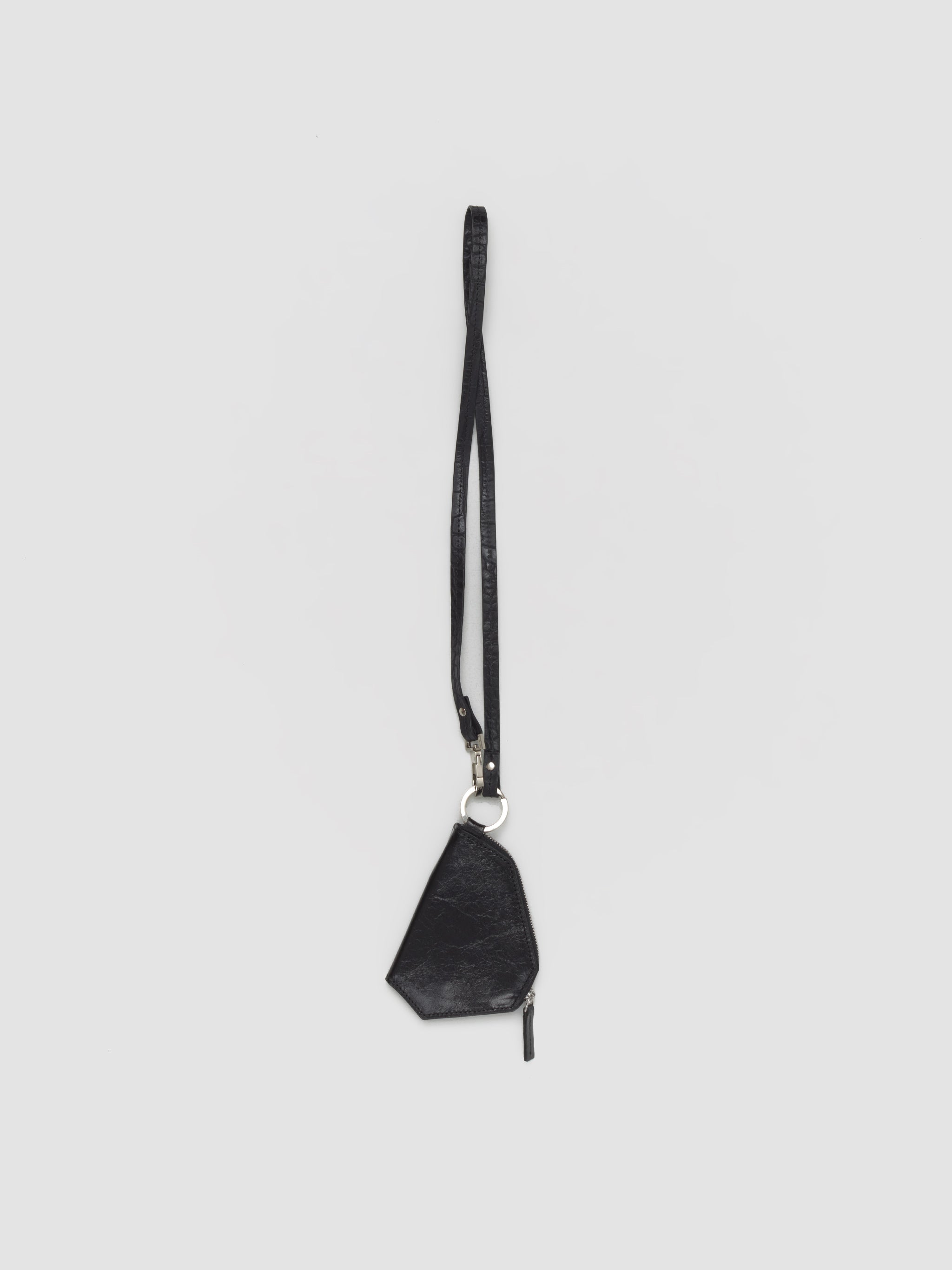 KIKO KOSTADINOV Ohne Keycase in Black is made from 100% leather following an asymmetric shape with zip closure.