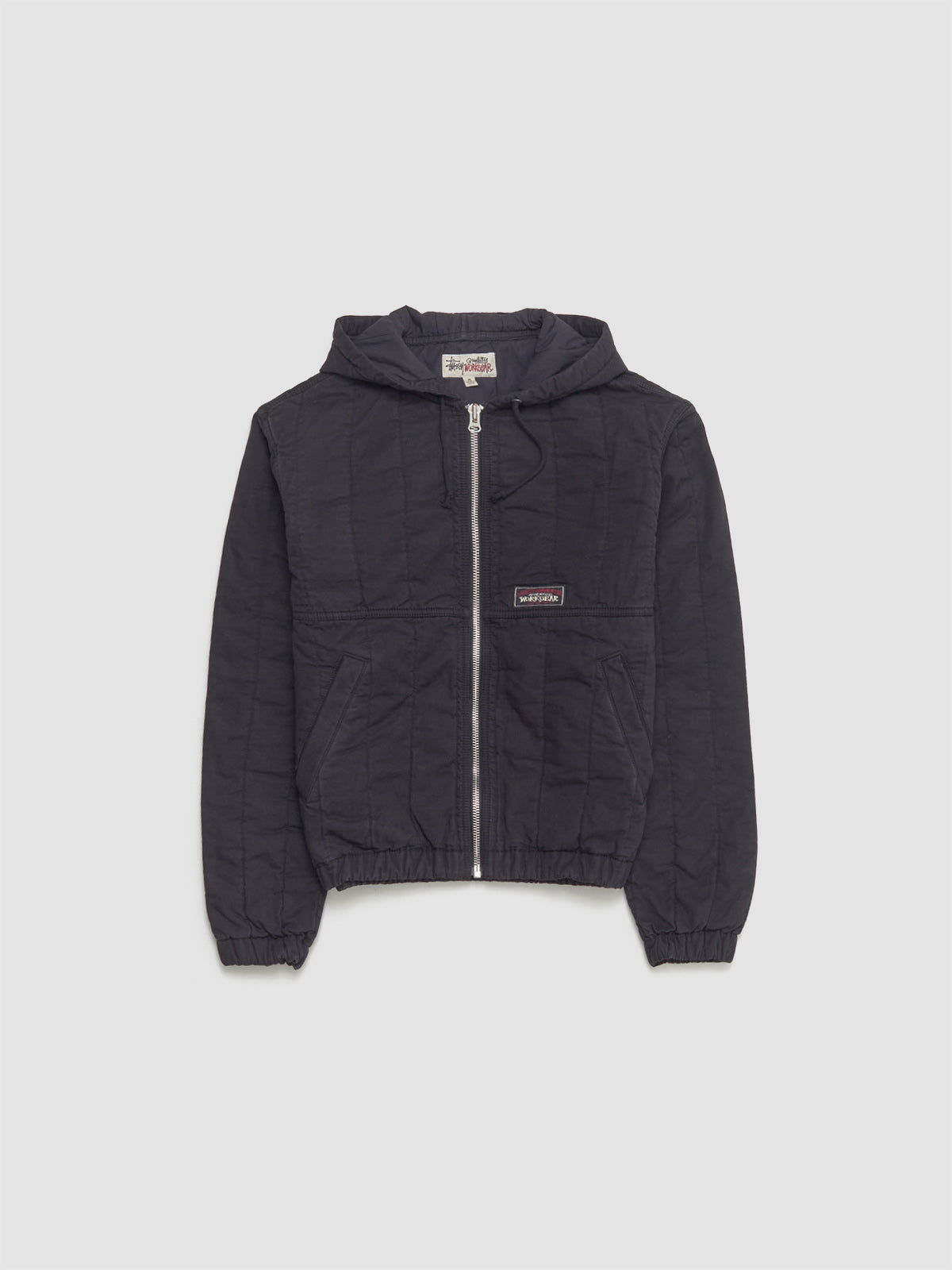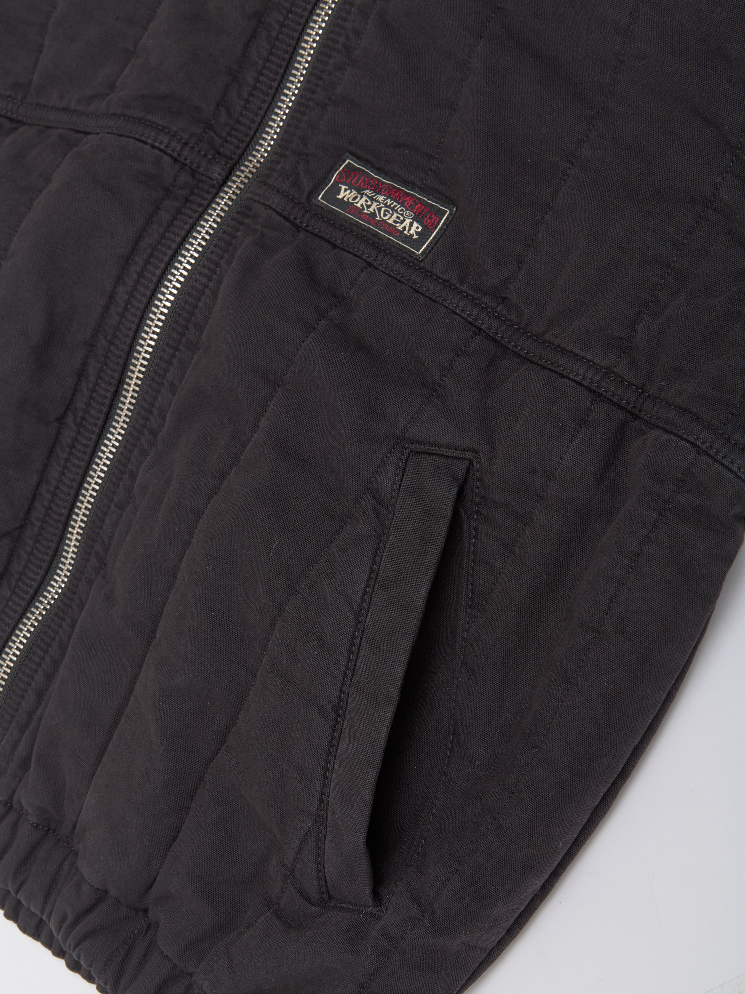 Stüssy Quilted Canvas Work Jacket in Black is made from 100% cotton following a relaxed silhouette with a workgear logo patch at the chest.
