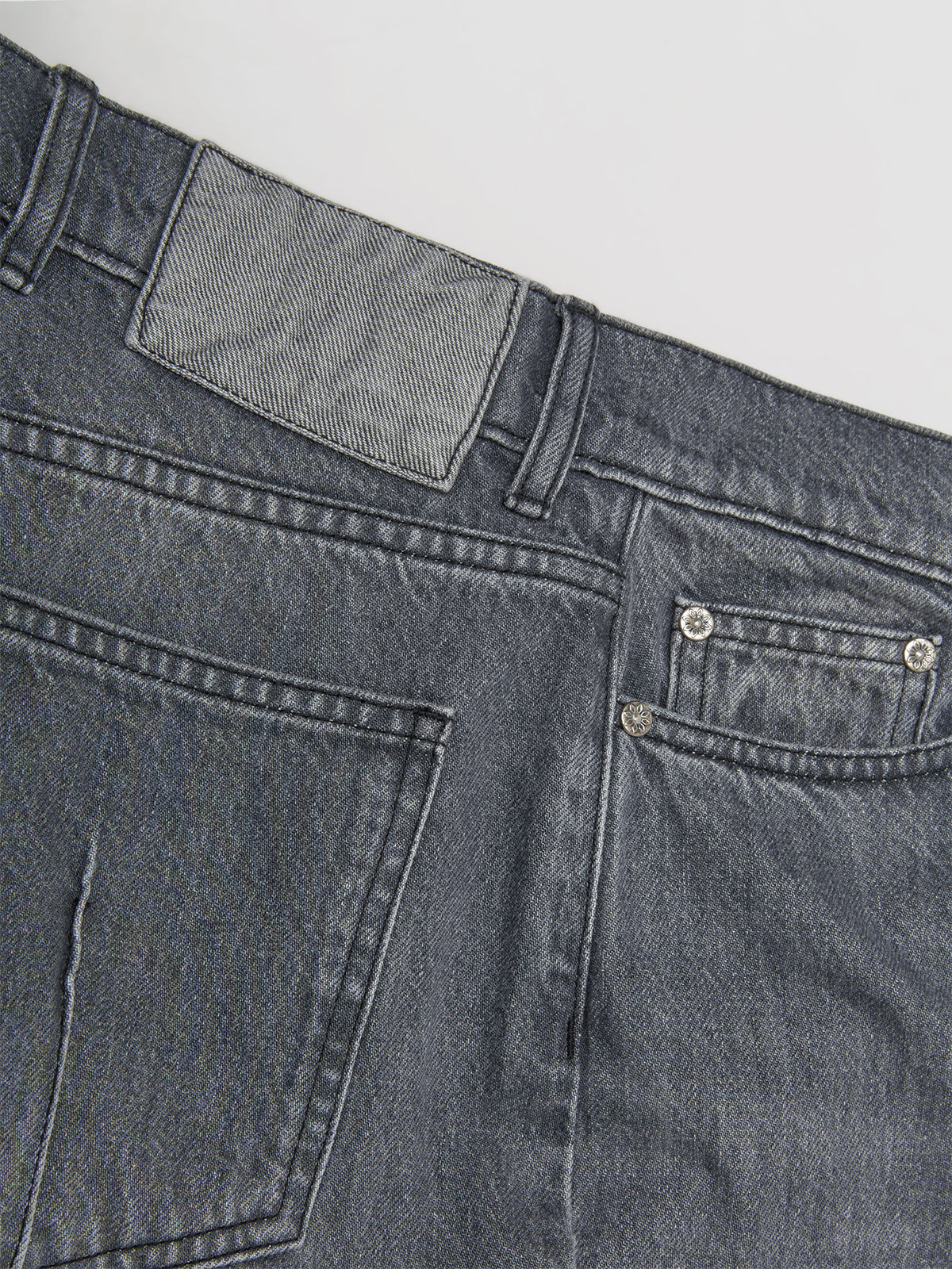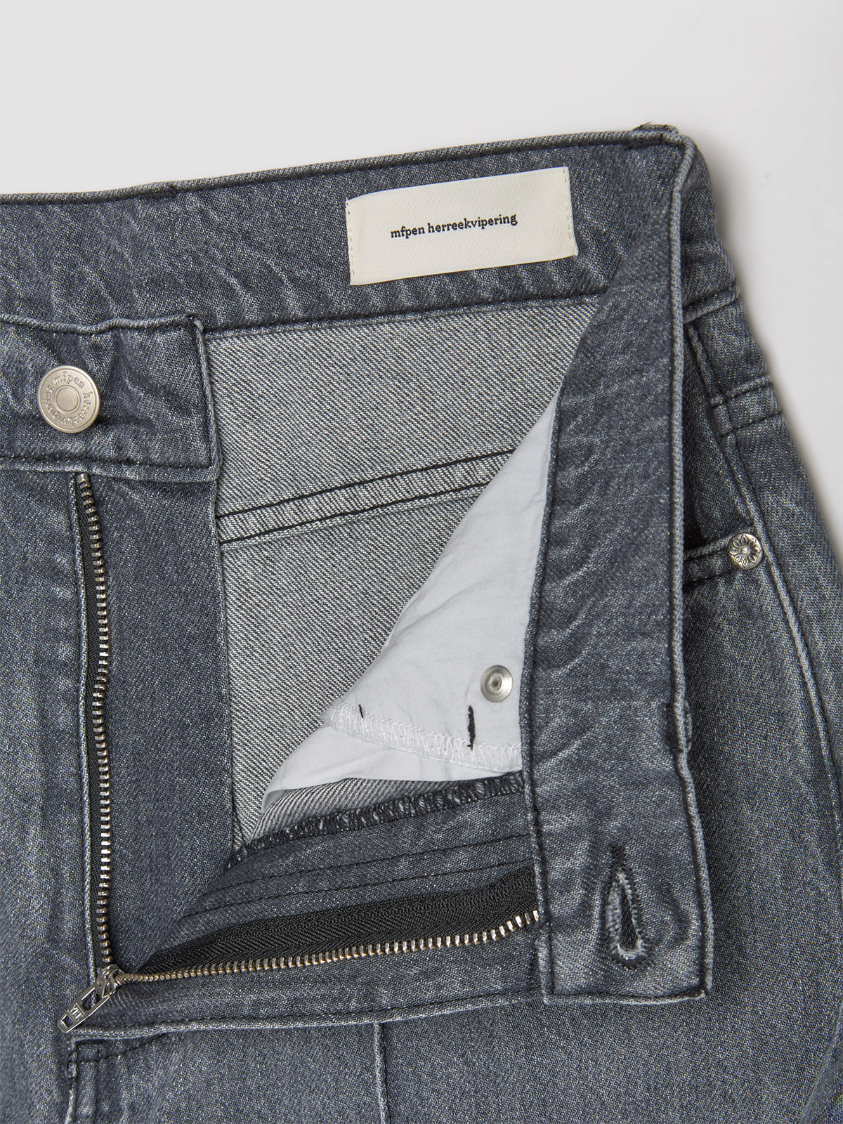 mfpen Ritual Jeans in Stonewashed Grey are made from 100% cotton following a straight silhouette with flower rivets.