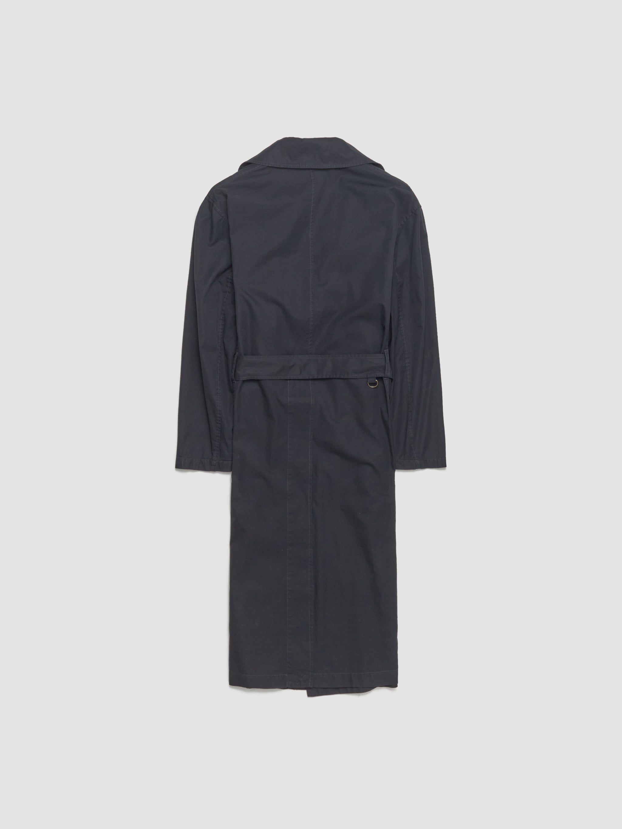 Lemaire Trench Coat in Black is made from 100% cotton following a relaxed silhouette with double-breasted button closure.
