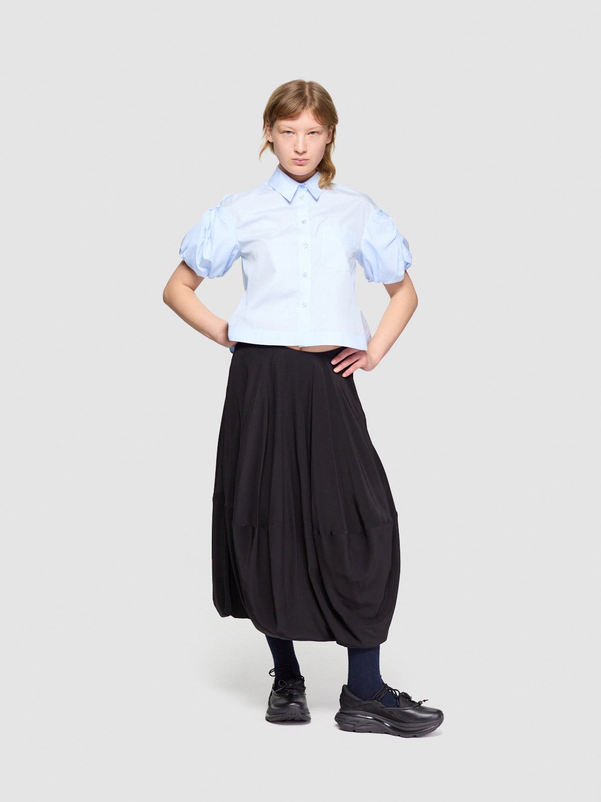 Lemaire Balloon Skirt in Black is made from 100% silk blend following a regular silhouette with a fluid silk crepe.