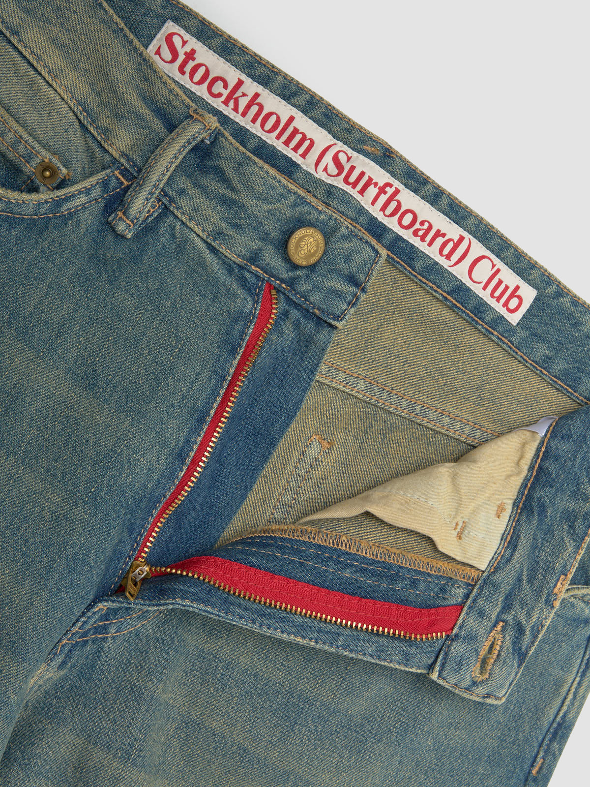 Stockholm Surfboard Club Frank Jeans in Sand Blue are made from 100% cotton following a relaxed silhouette with distressed detailing.