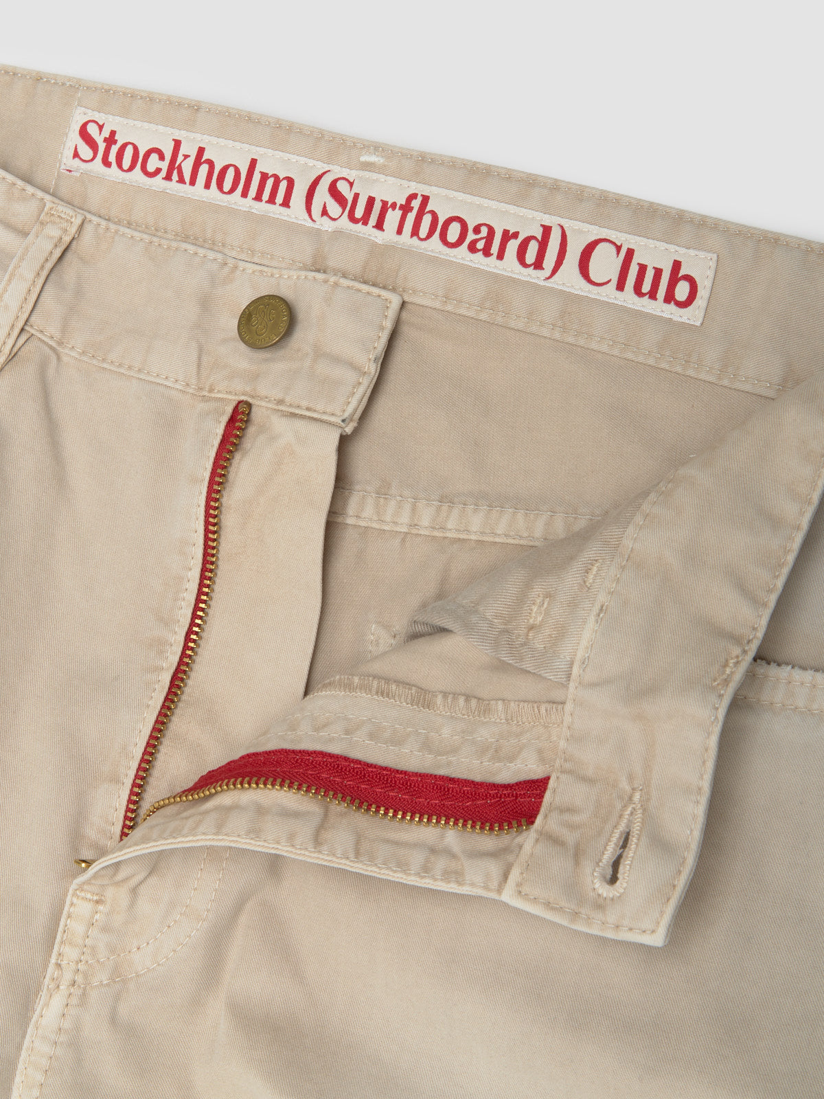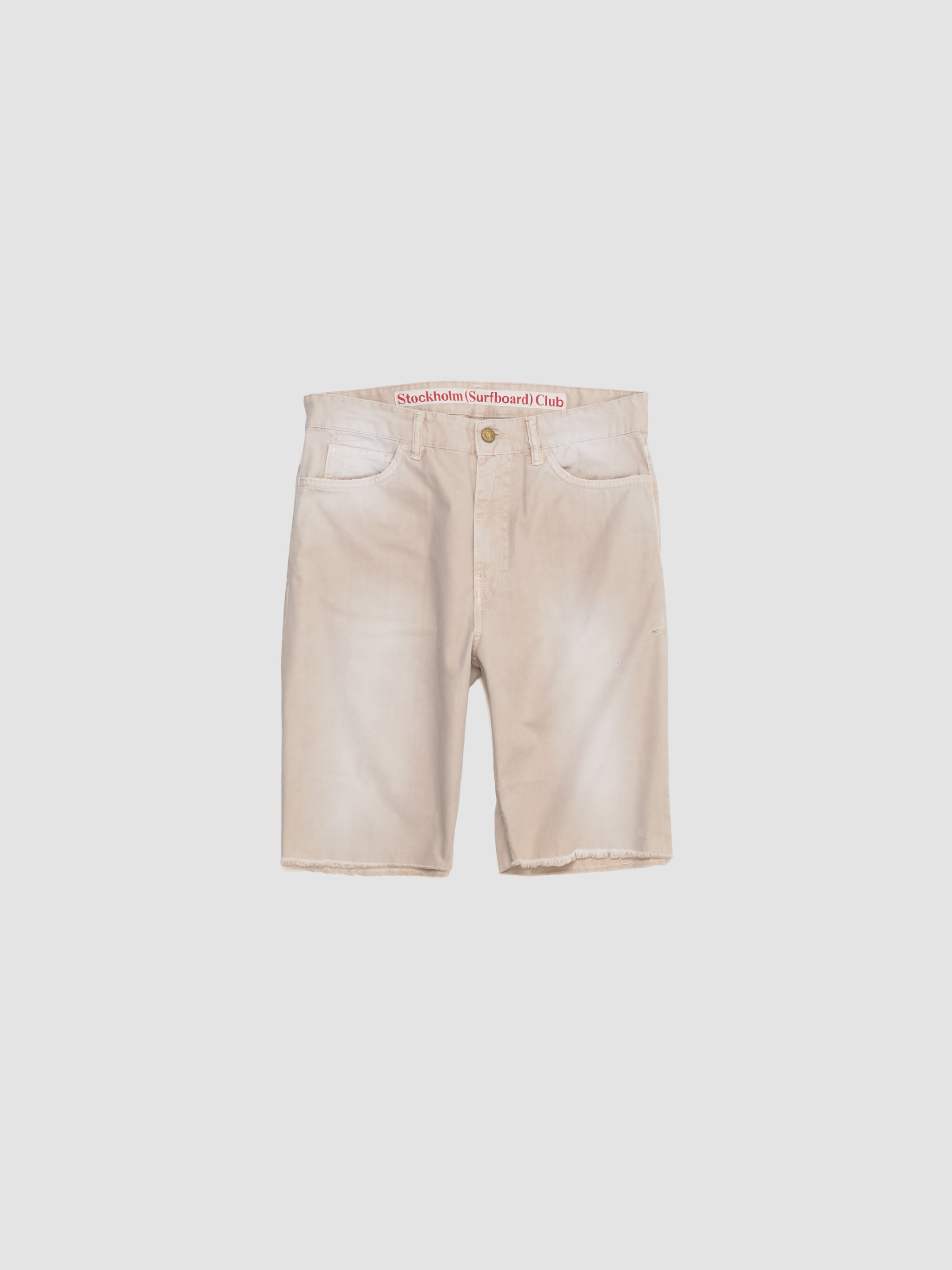Stockholm Surfboard Club Half Shorts in Beige are made from 100% cotton following a relaxed silhouette with distressed detailing.