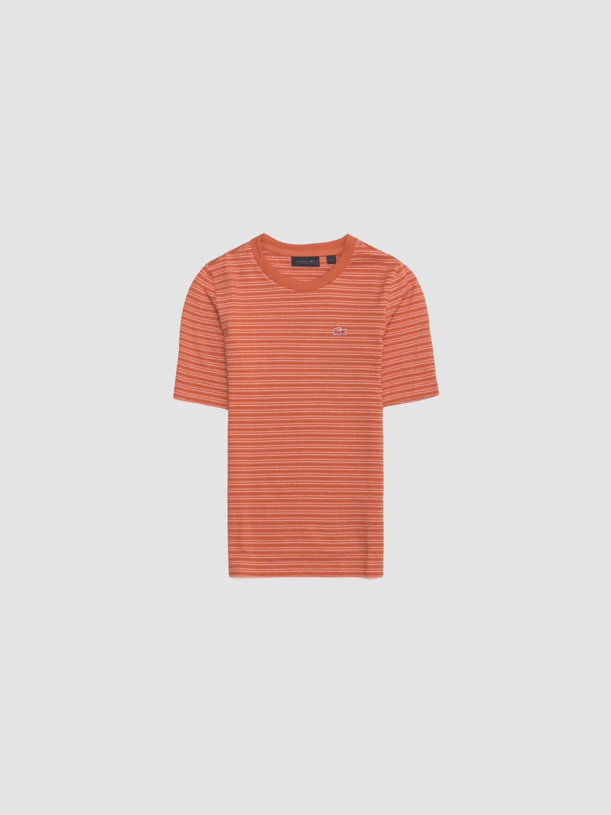 Lacoste Nini Crewneck T-Shirt in Emberlin & Multi is made from 100% cotton following a fitted silhouette with a tonal crocodile patch detail at the chest.