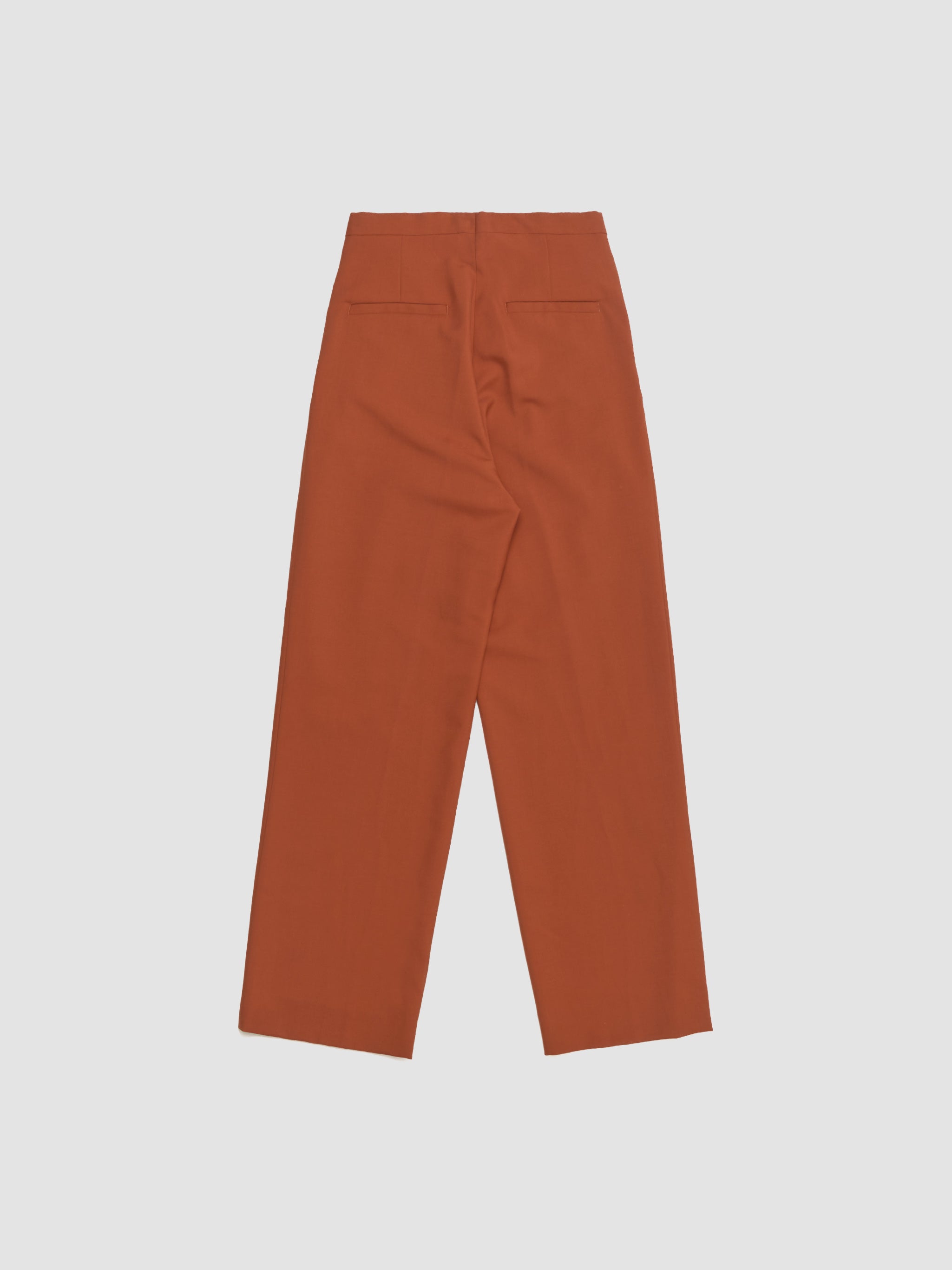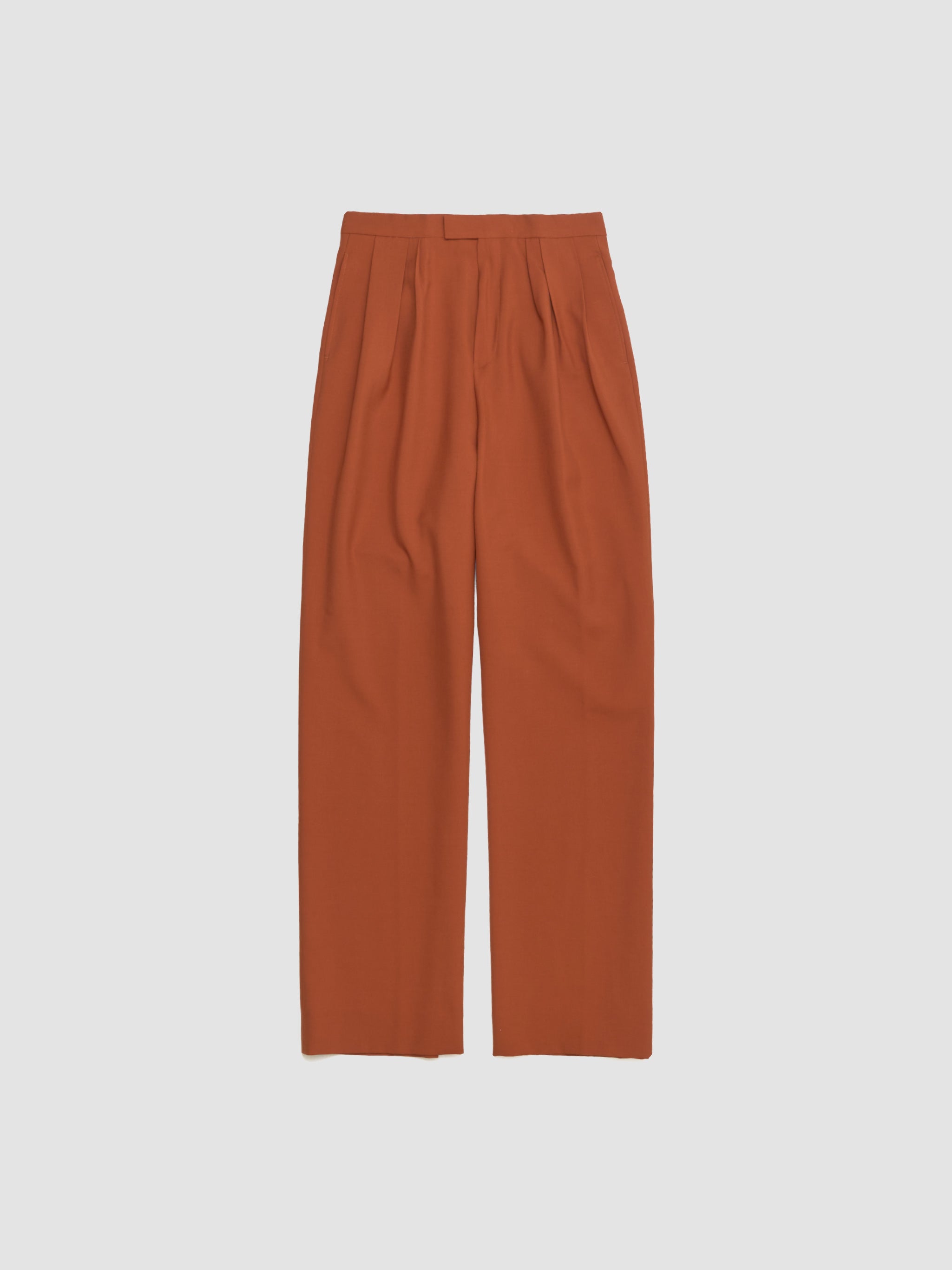Dries Van Noten Preaches Bis Pants in Rust are made from a wool blend following a wide leg silhouette with front pleats.