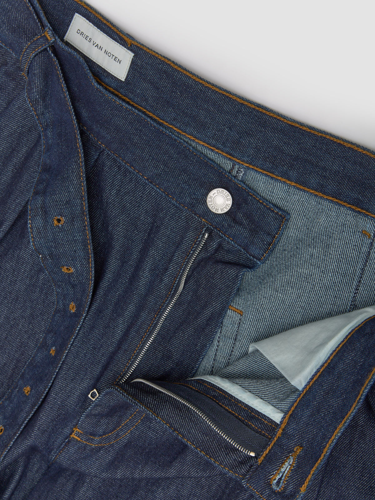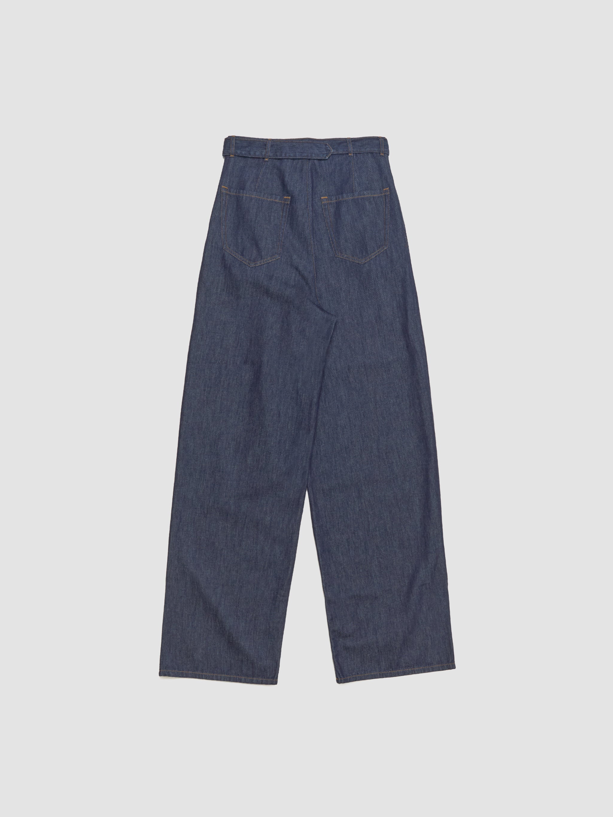 Dries Van Noten Preaches Den Pants in Indigo are made from 100% cotton following a wide leg silhouette with a belt.