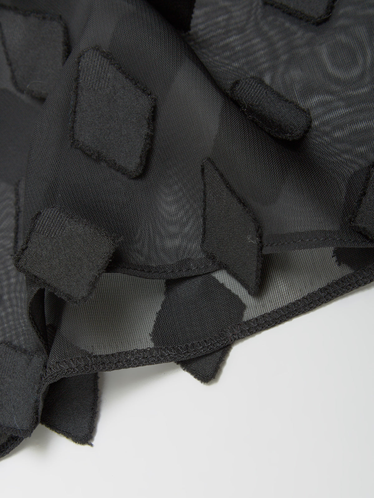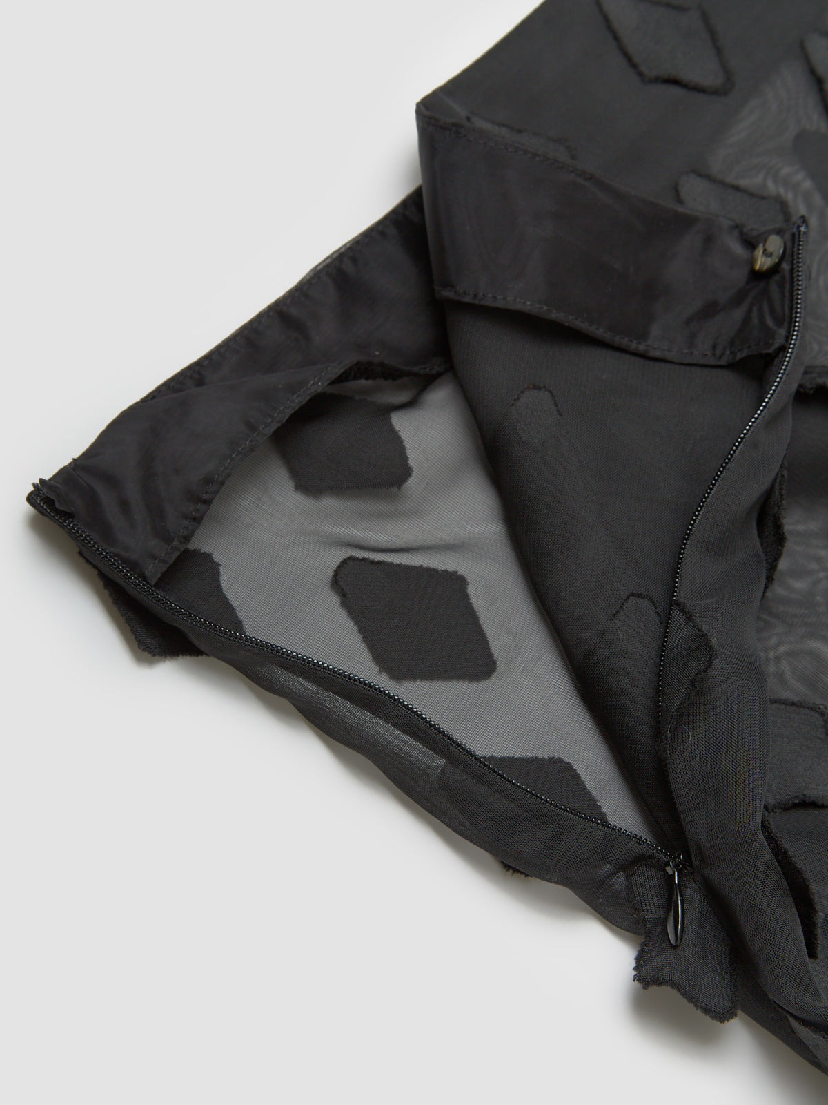 Paloma Wool Tris Midi Skirt in Black is made from 100% polyester following a fitted silhouette with embellished fabric squares.