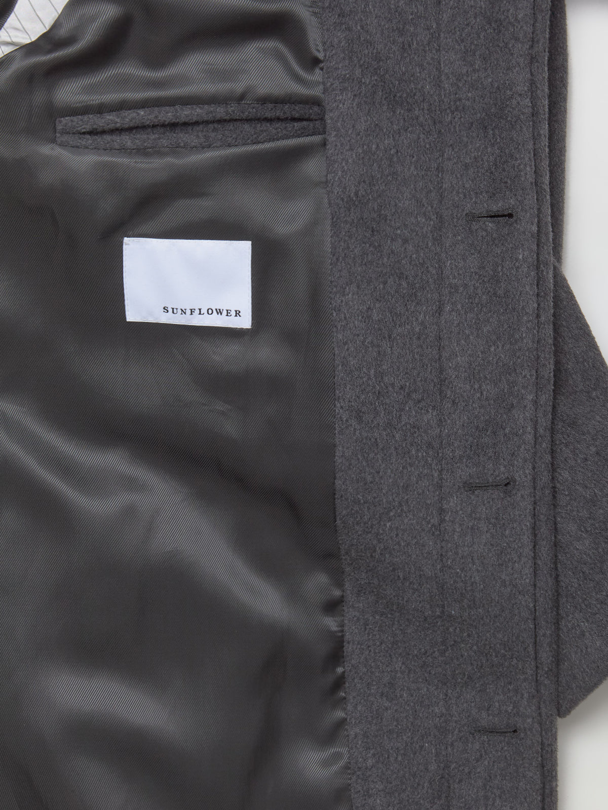 Sunflower Winter Coat in Antracite is made from a wool blend following a regular silhouette with a concealed button closure.